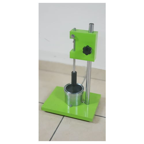 The bored Piston penetration apparatus is used for measuring the consistency of mortar cement, building lime and gypsum. The device consists of an experiment container, a steel base plate on which the experiment container is placed, a penetration lever, and a vertical lever carrying the piston. The drop height is set to 100 mm. The weight of the Piston and the aluminum vertical arm carrying it is 90 g.